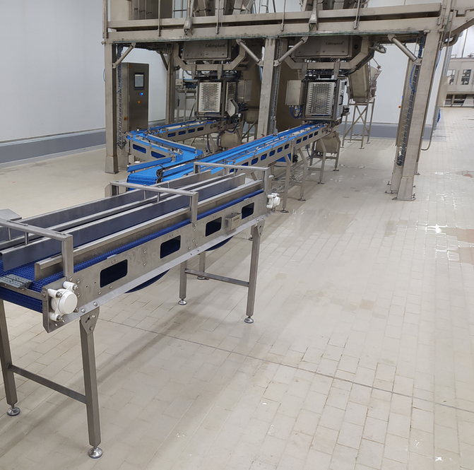 Kromeka stands at the forefront of conveyor system design, offering a diverse range of solutions that cater to the intricate needs of poultry processing, hatcheries, and further processing plants. Our engineers draw on immense experience to custom-design conveyor lines, whether it's for simpler plastic chain applications or very complex carton box handling. Capable of outfitting facilities with the precision of up to 70 boxes/minute traffic systems, we also excel in integrating solutions that feed into carton box freezers, weighers, and beyond. At Kromeka, we don't just build conveyor systems; we engineer pathways that enhance efficiency, adaptability, and productivity within your operations.
